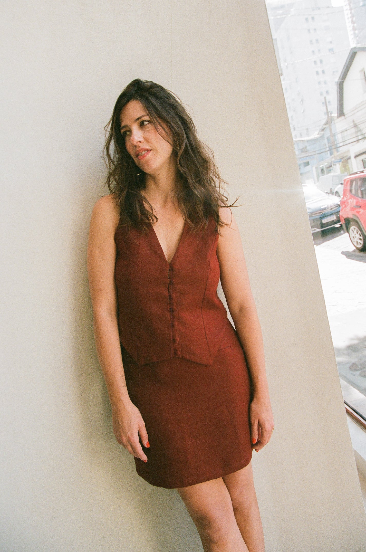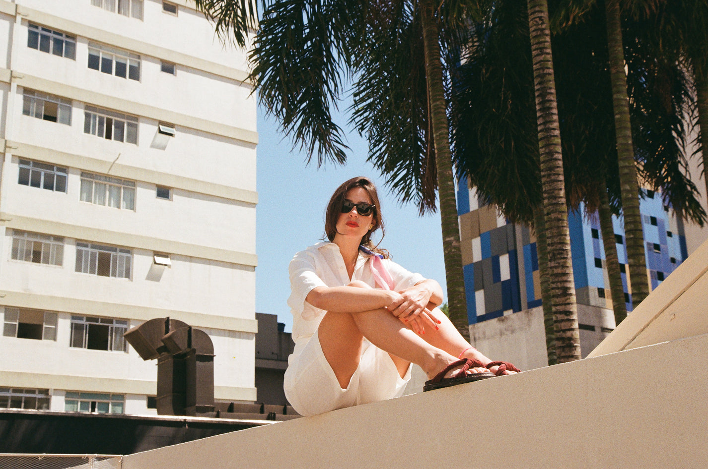 Nossa coleção AURORA é apresentada numa seleção especial de Roberta, fotografada ao meio-dia, sob sol a pino, em analógicas por Jana Cavalli. Na laje aberta, as peças respiram junto com o dia e a cidade e trazem a atmosfera luminosa e natural da coleção.