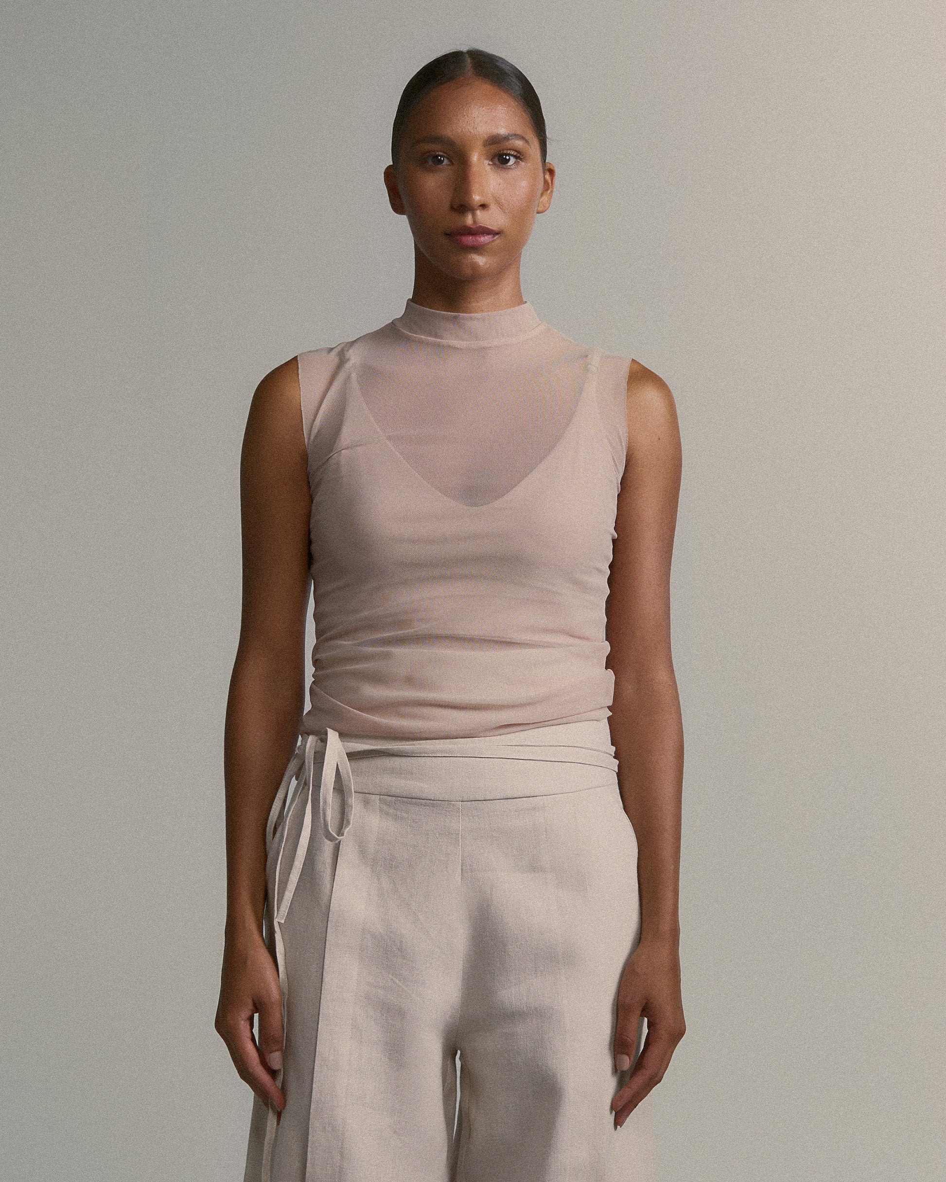 Versão de manga curta da nossa segunda pele. Feita em tule poliamida, é justa e se adequa ao corpo como uma extensão da pele. Com gola baixa e corte a fio (laser), é uma peça básica e indispensável, perfeita para ser usada sozinha ou em sobreposição a casacos e vestidos. Disponível nas cores pele e preto.