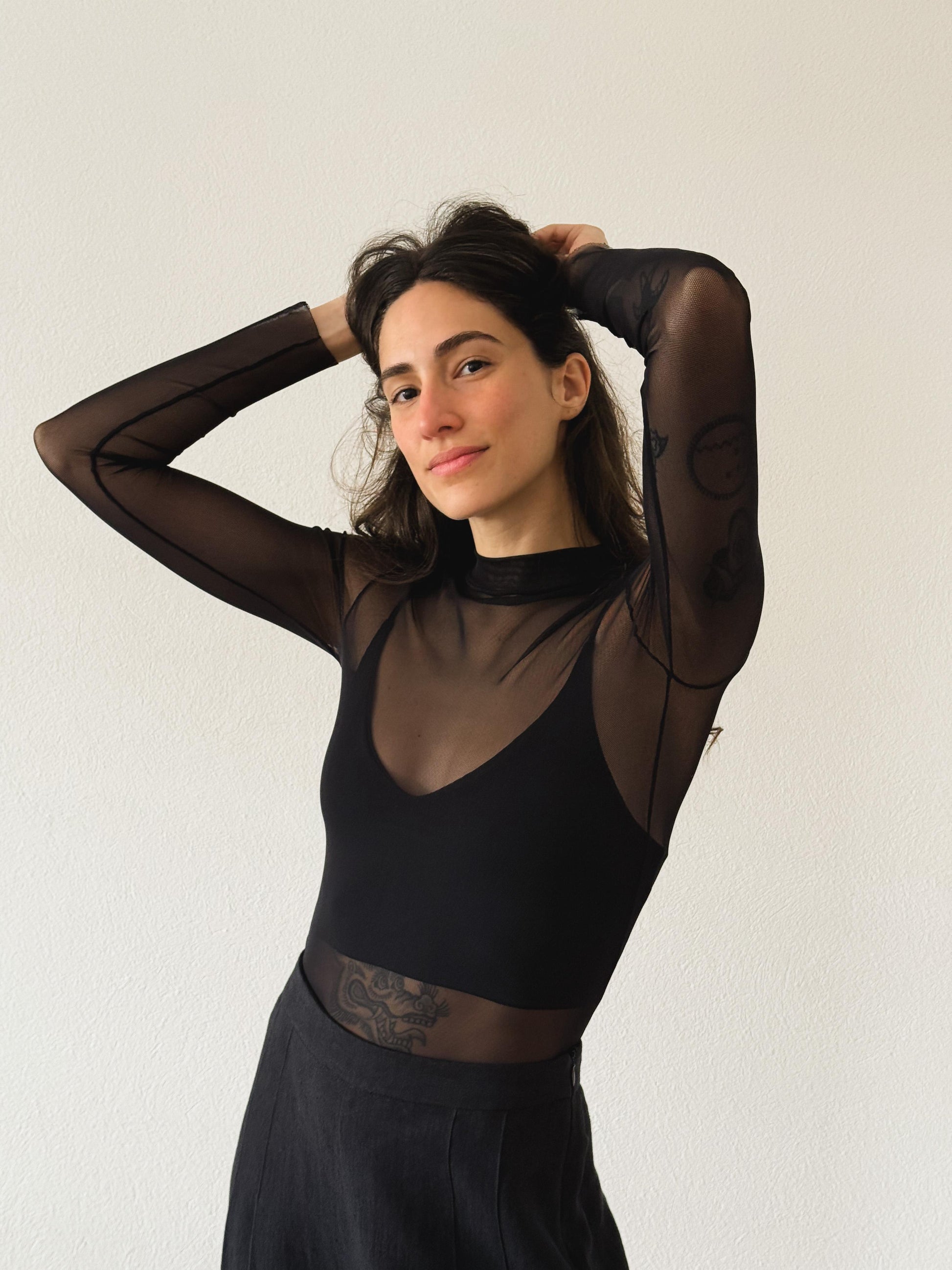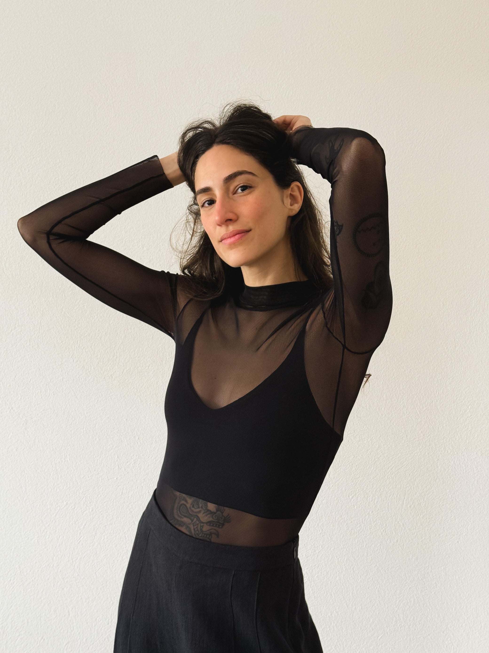 A Blusa Belmonte é uma segunda pele básica de manga longa. Confeccionado em tule poliamida, é justo e molda-se ao corpo, trazendo conforto e leveza. Possui gola baixa e acabamento cortado a fio (laser), realçando sua simplicidade sofisticada. Ideal para ser usado sozinho ou em sobreposição em casacos e vestidos. Disponível nas cores pele e preto.