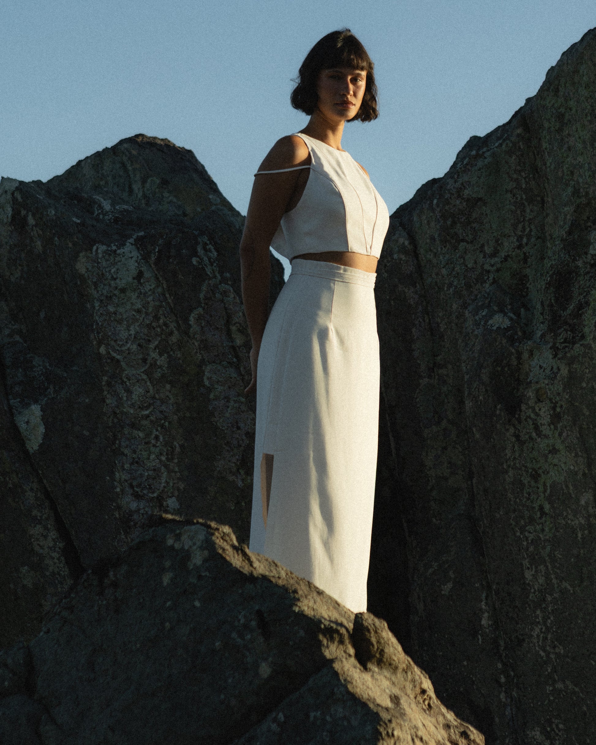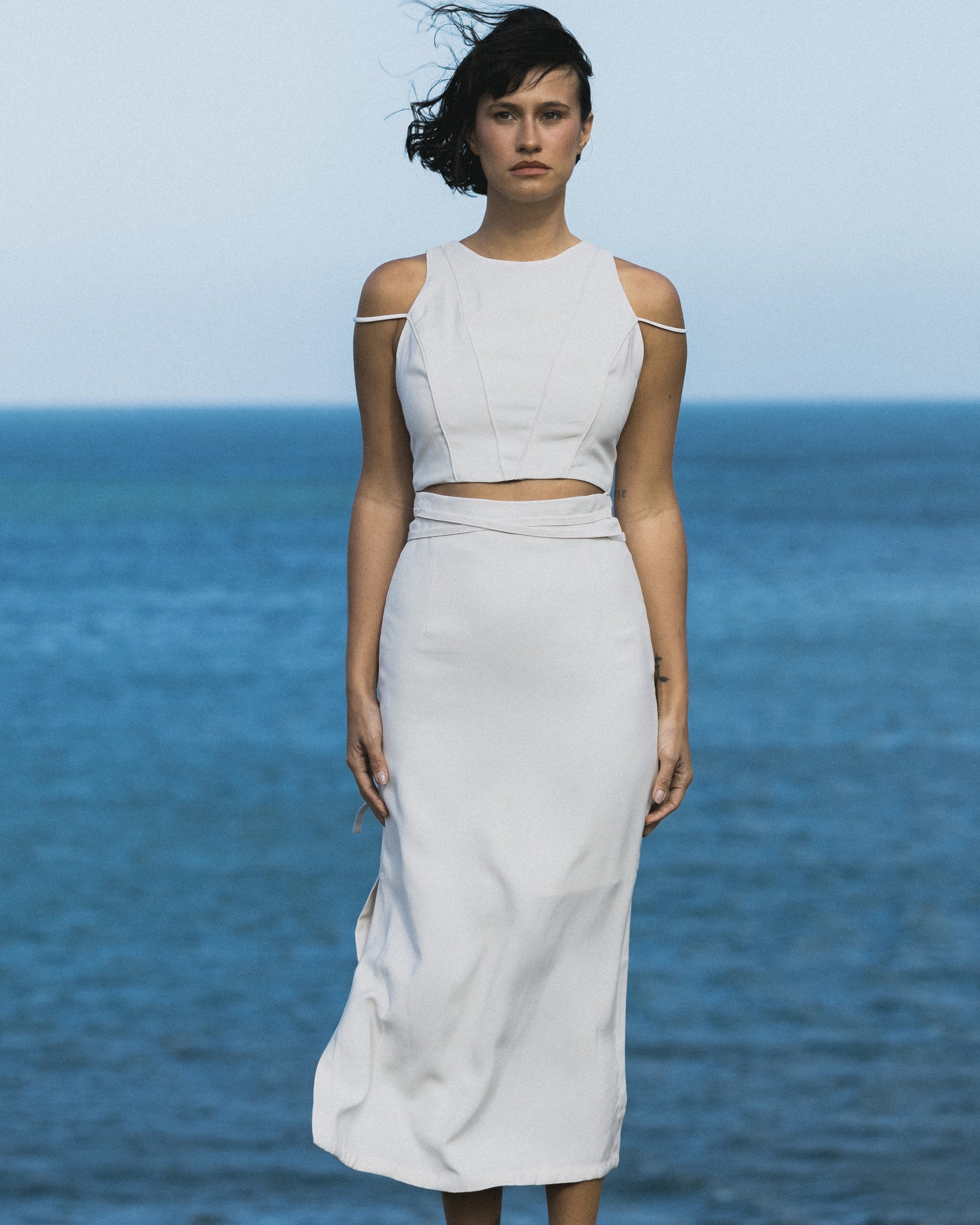 A Blusa Imperatriz é uma reinterpretação sofisticada do nosso icônico vestido Imperatriz, trazendo a mesma elegância e perfeição no caimento. Com um corte cropped e busto anatômico, ela apresenta recortes sutis do próprio tecido que se estendem até os ombros, culminando em uma sobreposição em forma de triângulo nas costas. Os detalhes de sobreposição e recortes delicados conferem à peça uma silhueta impecável, destacando a sofisticação e o design único. Seu fechamento é feito com zíper invisível nas costas, garantindo um ajuste perfeito. Confeccionada em Tencel, essa blusa é a escolha ideal para combinar com as diversas partes de baixo da coleção, criando looks elegantes e versáteis.