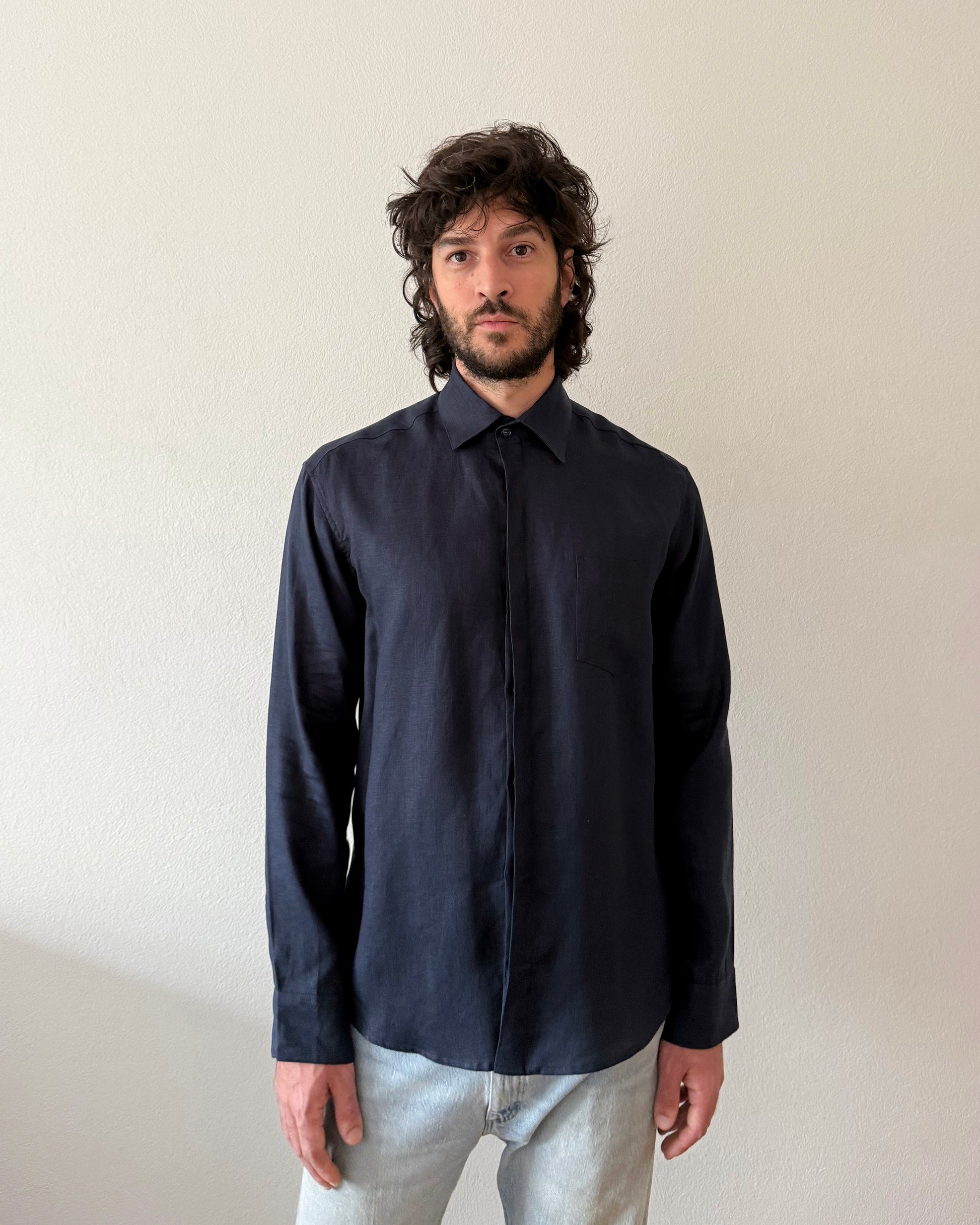 A Camisa Gabriel é uma peça masculina de linho, reta e solta. Possui gola tradicional com carcela, mangas longas e bolso frontal, com botões ecológicos. Atemporal e versátil, é uma peça essencial.