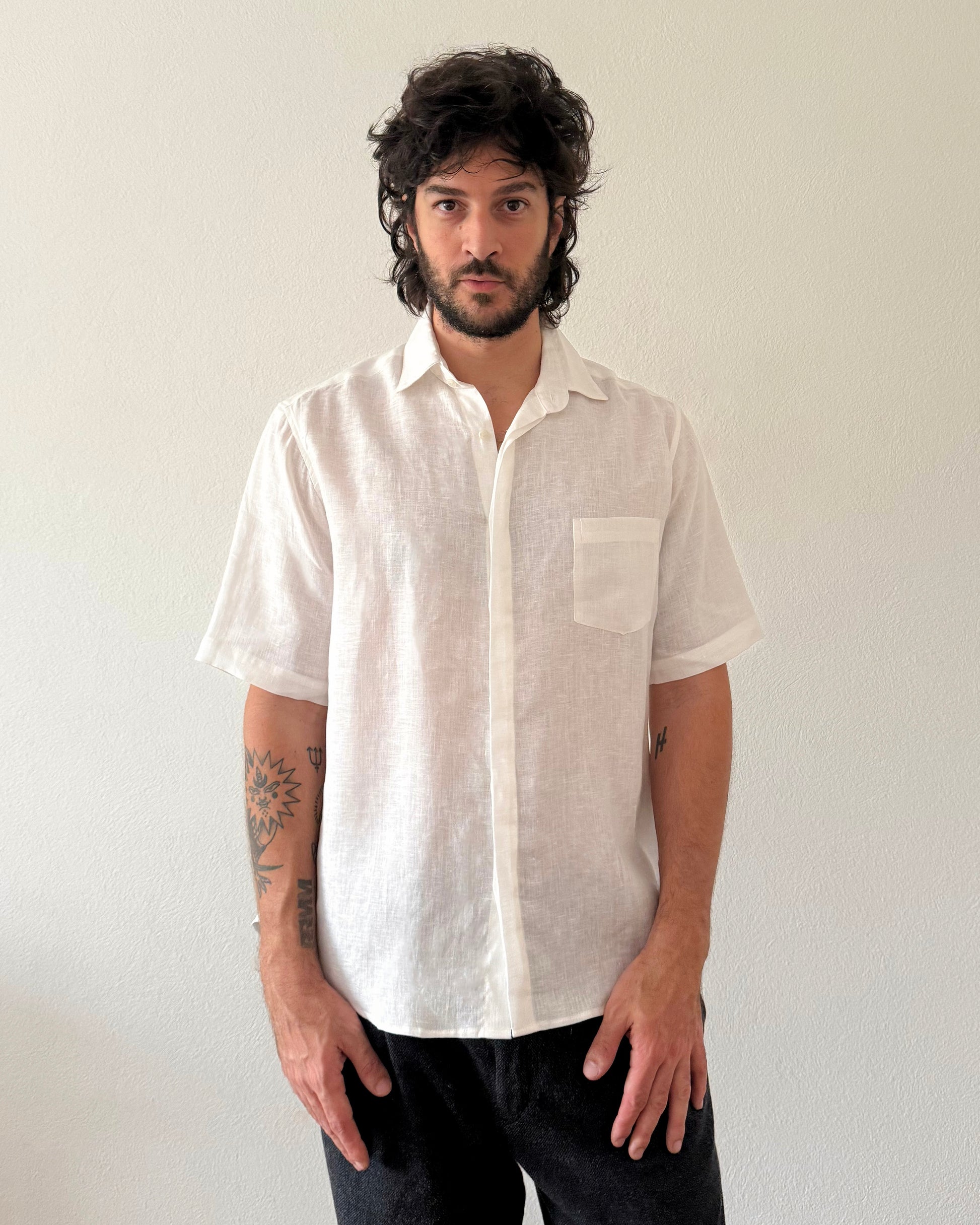 A Camisa Miguel é a versão de manga curta da camisa Gabriel. Solta e leve, feita em linho, com botões ecológicos. Ideal para compor looks versáteis e sofisticados.