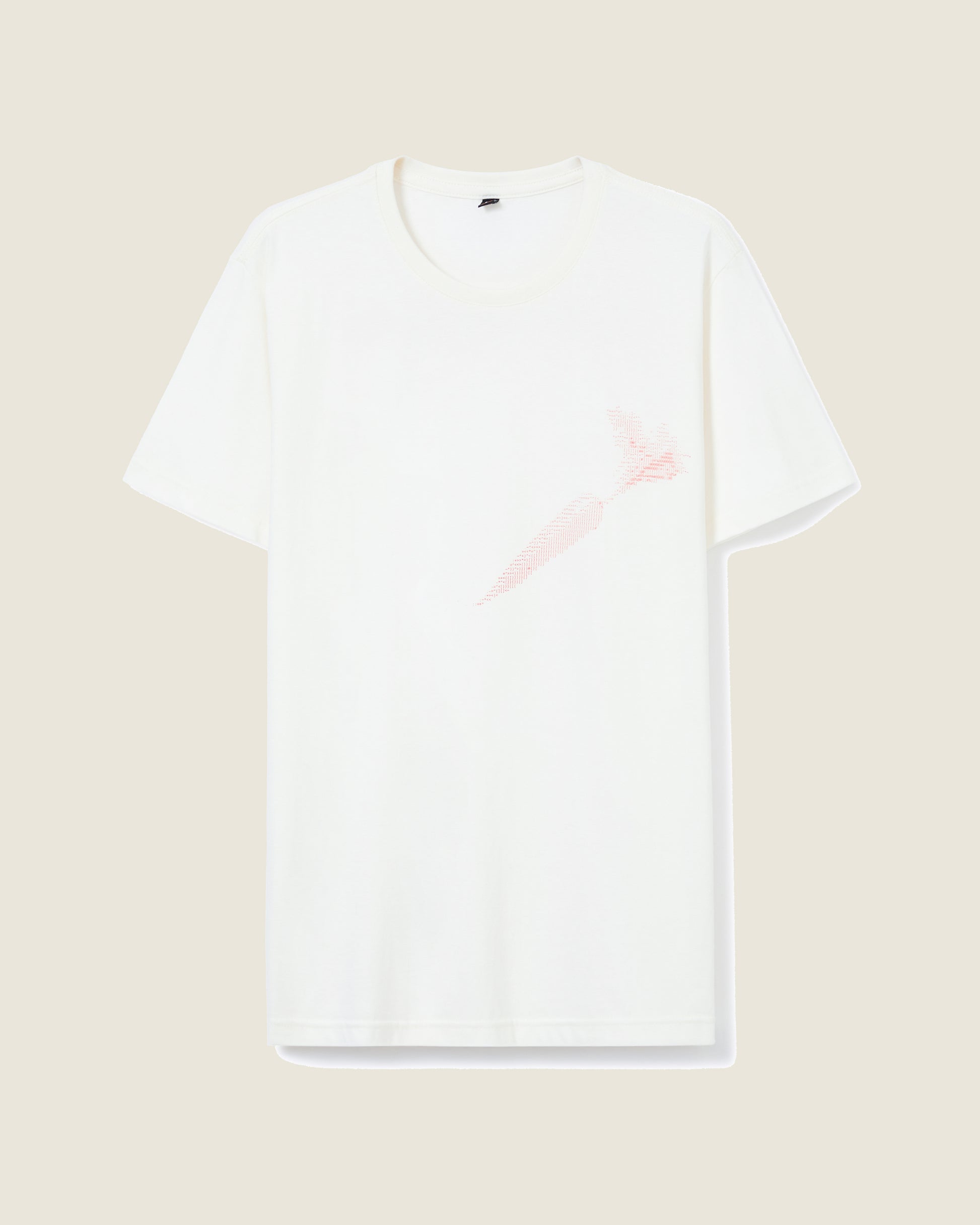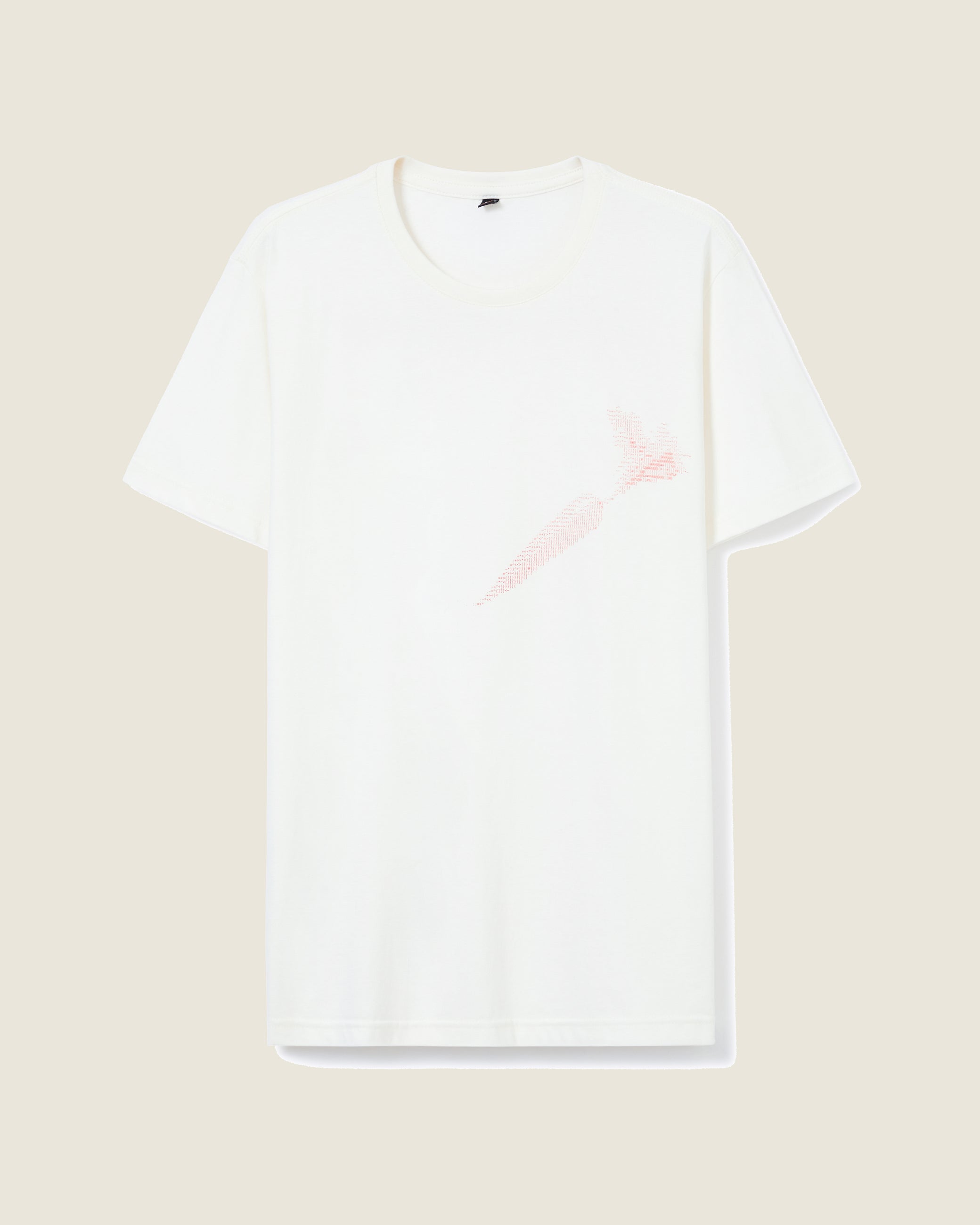 A estampa em serigrafia apresenta uma cenoura estilizada que adiciona um toque criativo à peça. Desenvolvida especialmente para a Feira do Livro.
