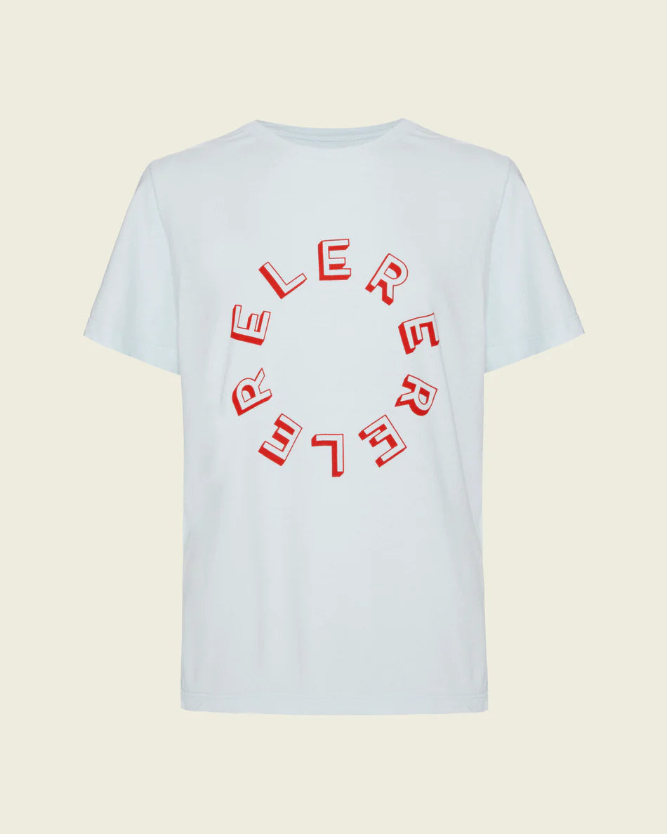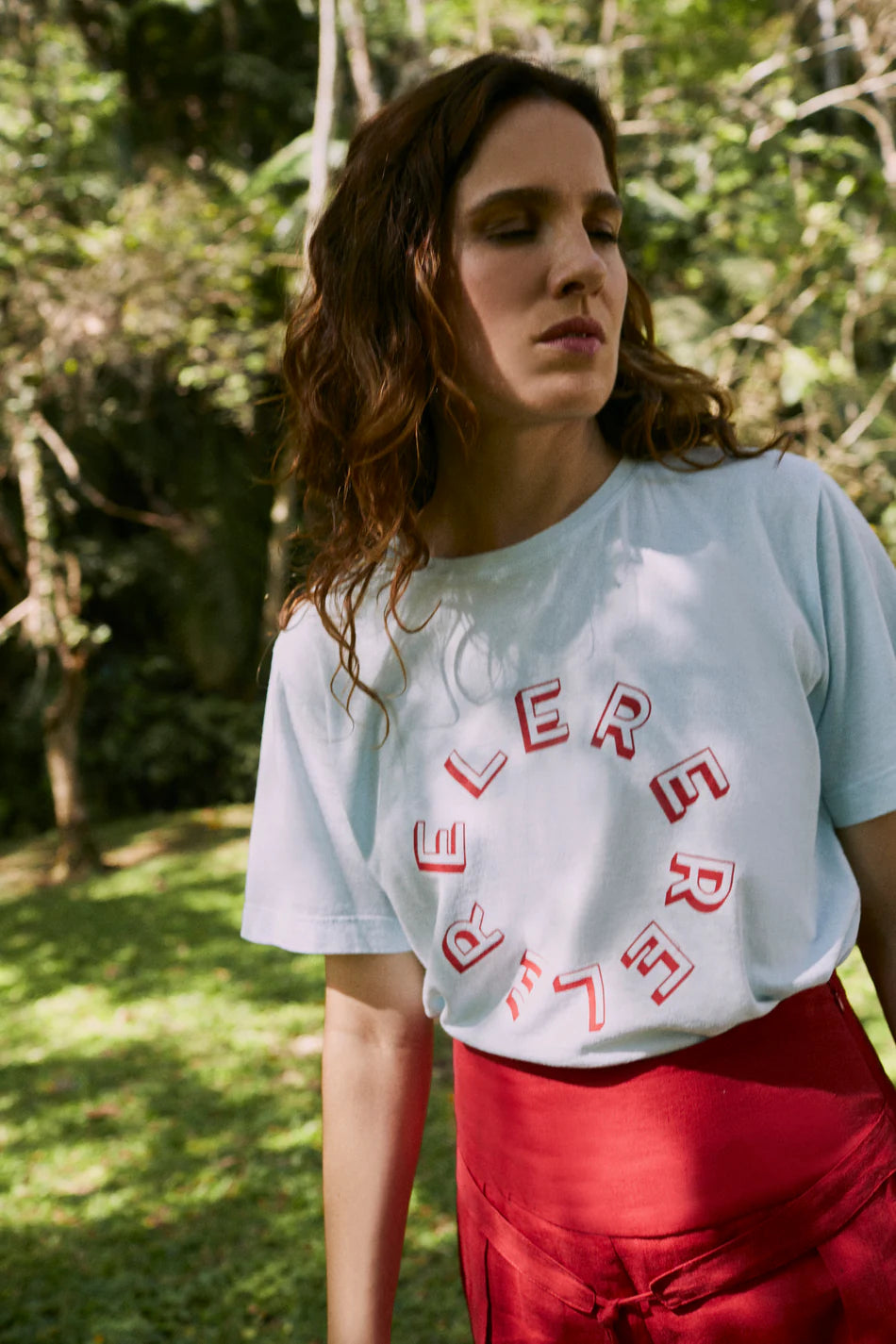 Camiseta Palíndromo "E Ler E Reler" Azulzinho/Vermelho