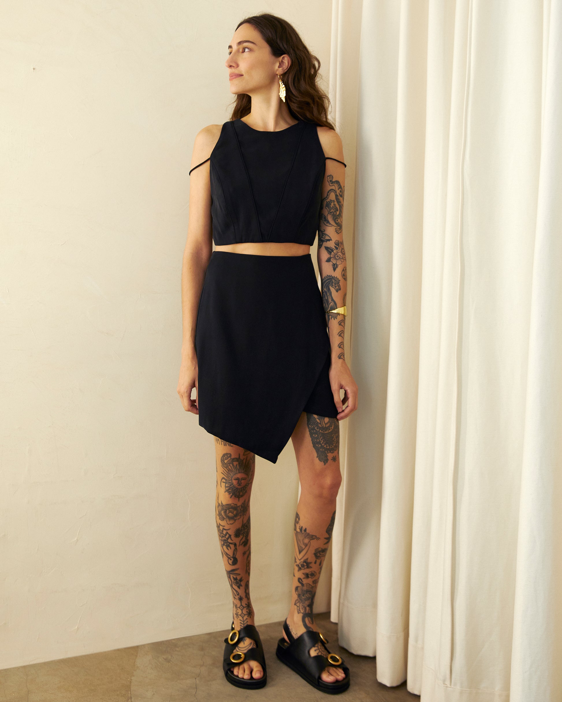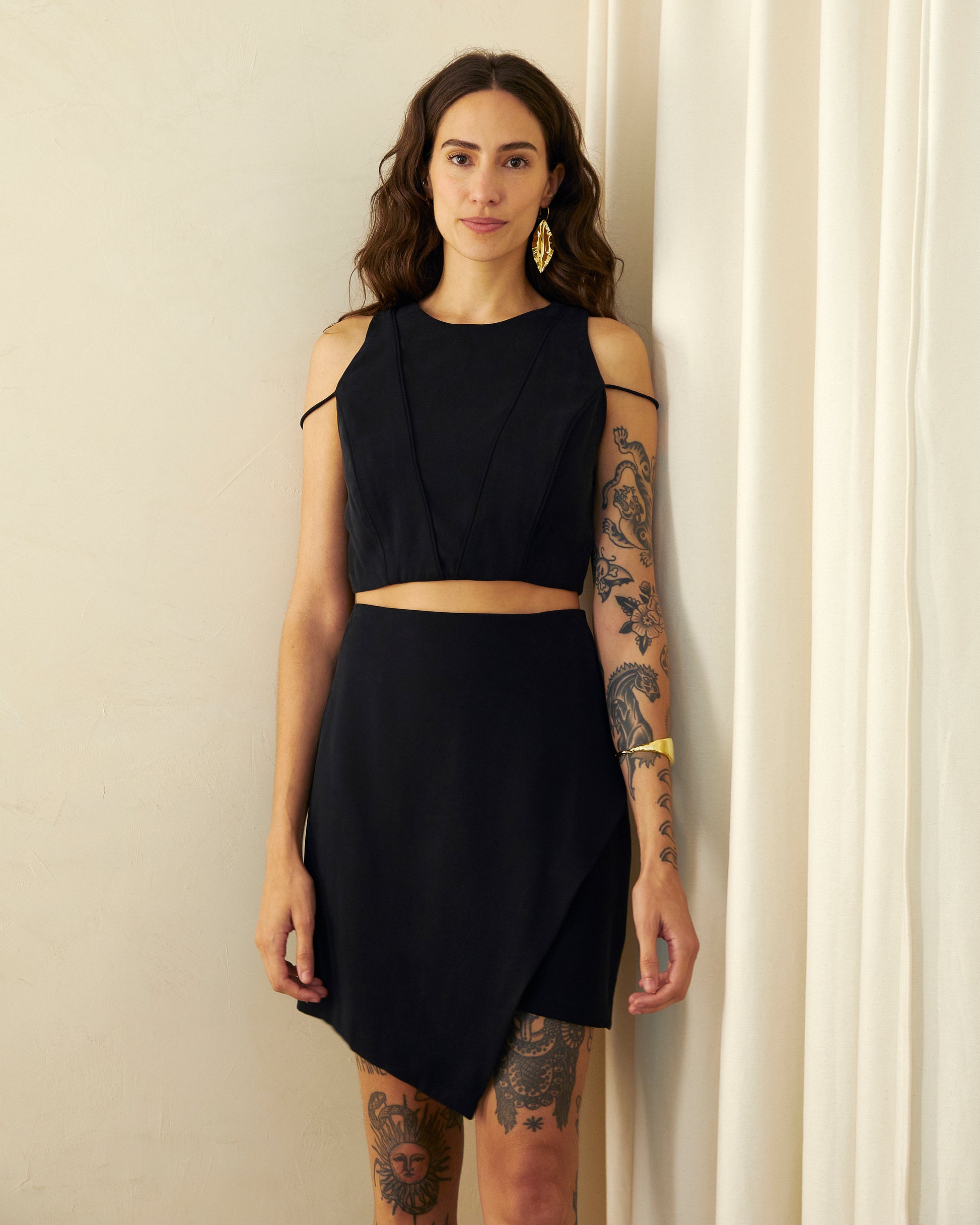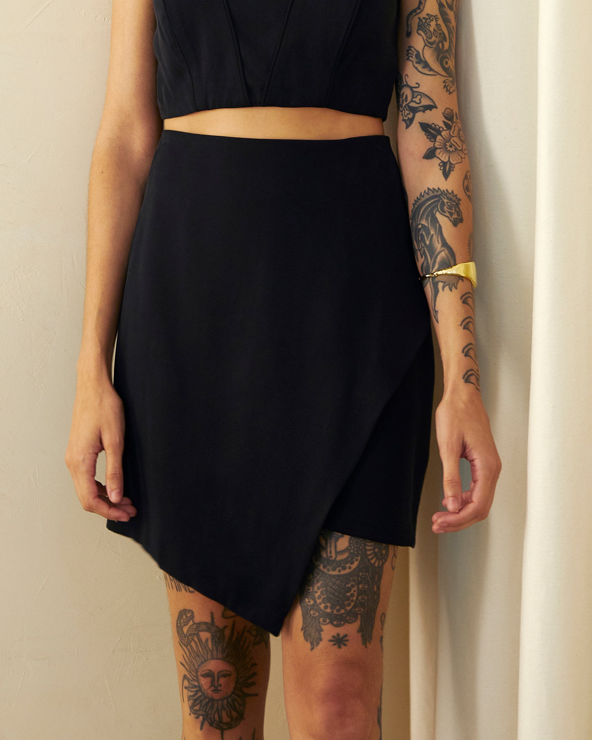 Inspirada na nossa Saia Pareô curta, a Saia Géia traz sobreposição assimétrica e design envelopado. Confeccionada em Tencel — tecido leve e fluido — garante conforto e movimento, enquanto o fechamento em zíper invisível nas costas proporciona ajuste delicado e preciso. A modelagem frontal é assimétrica.