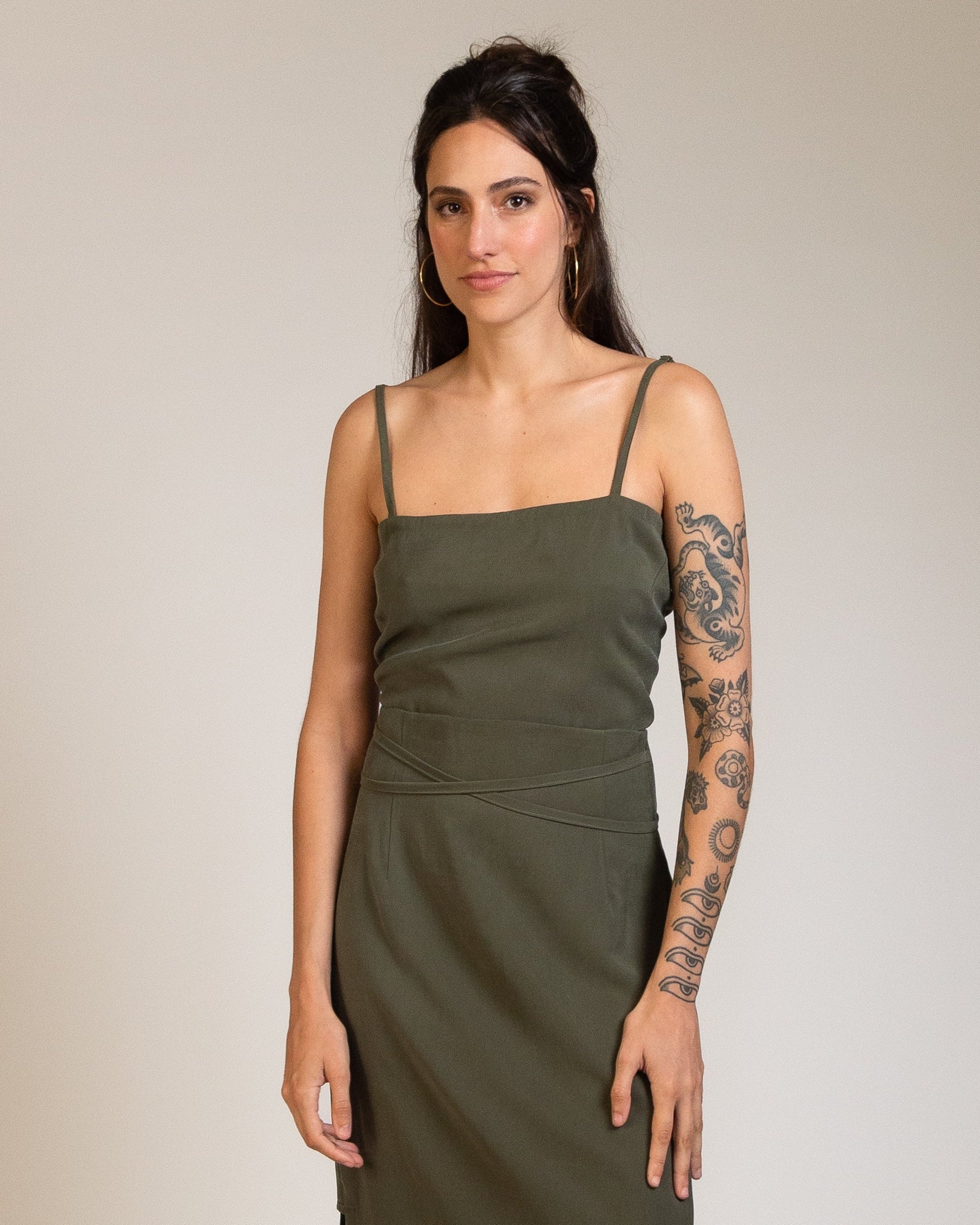O Top Pitanga é uma regata básica de alças finas e delicadas. Possui decote reto na frente, levemente triangular, e nas costas apresenta um rolotê regulável, que permite ajustar o caimento e acinturar a peça. Compõe perfeitamente com a linha de tencel e cria conjuntos versáteis para o verão.